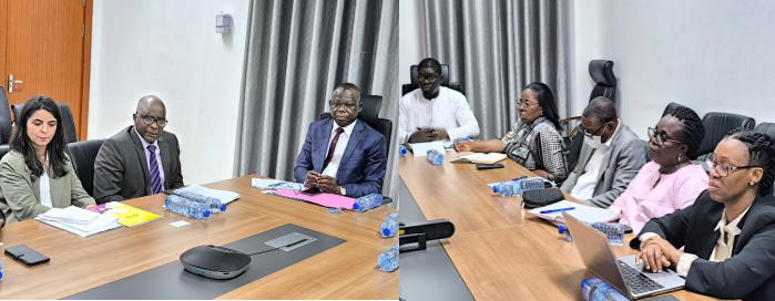 Le ministre de la santé, de l’hygiène publique, de la couverture sanitaire universelle et des assurances, Monsieur Jean-Marie Koffi TESSI a tenu une séance de travail, ce 30 octobre 2025, en son cabinet, avec l’équipe pays du Fonds Mondial de lutte contre le VIH/ Sida, le Paludisme et la Tuberculose. Dirigée par le professeur Tchin DARRE, ministre délégué, à la demande du ministre TESSI et en sa présence, la rencontre a connu la participation des différents responsables du ministère et des programmes du Fonds mondial au Togo.