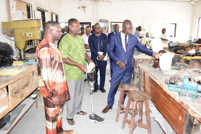 En marge de la visite des Ecoles de formation, Le Centre National d’Appareillage Orthopédique (CNAO), une structure salvatrice de rééducation et de réadaptation post handicap, a été passée en revue, pour encourager le personnel dans leur noble tâche et entrevoir des perspectives de renforcement.